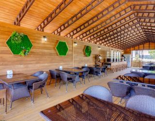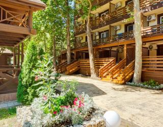 Гостиничный комплекс включает в себя четыре пятиэтажных, оснащенных лифтом корпуса. Помимо этого, на территории расположены деревянные коттеджи, рассчитанные на размещение от 2-х до 8-ми человек. Во всех номерах установлена сплит-система, есть телевизор и небольшой холодильник, а так же электрочайник, фен, утюг.