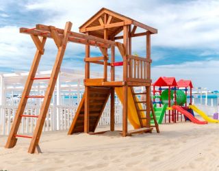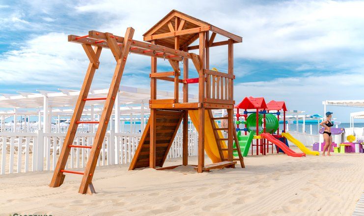 Пляж отеля, который считается одним из лучших в районе Пионерского проспекта, находится в 700 метрах от жилых корпусов. На побережье гостей доставляет трансфер отеля, но можно прогуляться пешком: дорога к морю займет не более 10—15 минут. На пляже организована зона отдыха, установлены бар, лежаки, навесы, шезлонги и туалет.