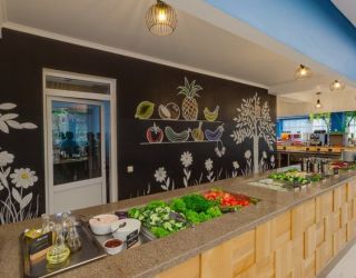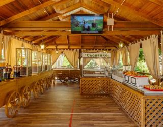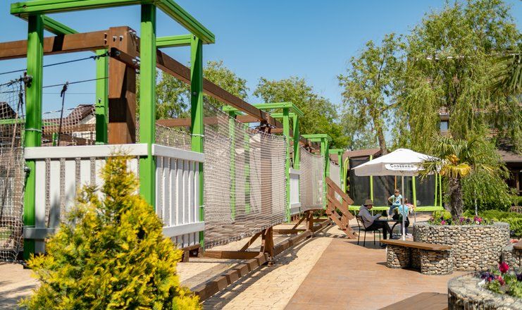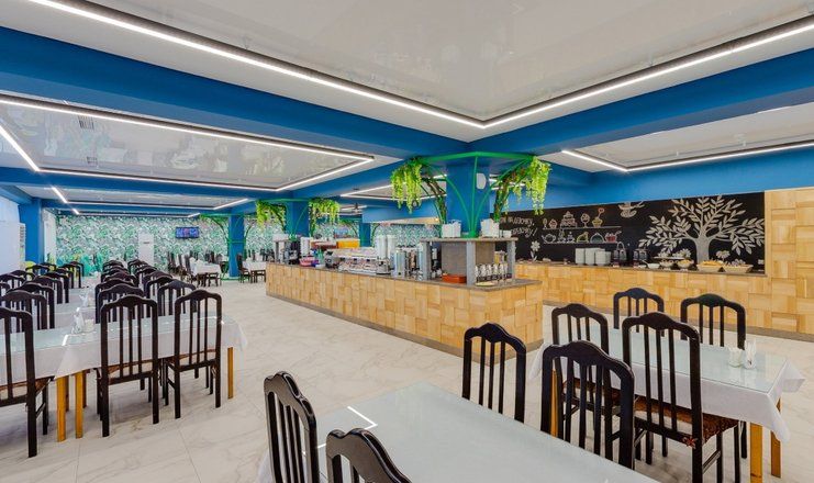 Ресторан с разнообразным меню работает в отдельно стоящем корпусе, также для гостей на территории открыто несколько кафе и баров. К услугам отдыхающих уличные бассейны — два взрослых и один детский, рядом с водной зоной установлены шезлонги для отдыха. Для любителей активного отдыха на территории организованы спортивные площадки для игр в баскетбол, волейбол, футбол, также все желающие могут взять напрокат велосипеды. В отеле регулярно проходят развлекательные мероприятия, вечерние шоу, устраиваются кинопоказы. Хорошо развита и инфраструктура для детей: на территории отеля организовано сразу несколько игровых площадок, есть детский лабиринт, батут и игровые приставки, ежедневно приходят аниматоры, а в детской комнате за малышами присматривают воспитатели.