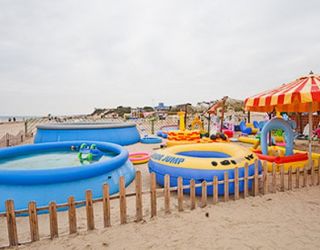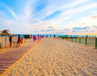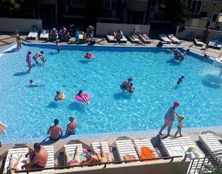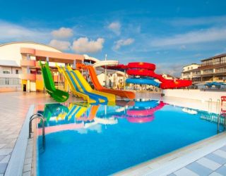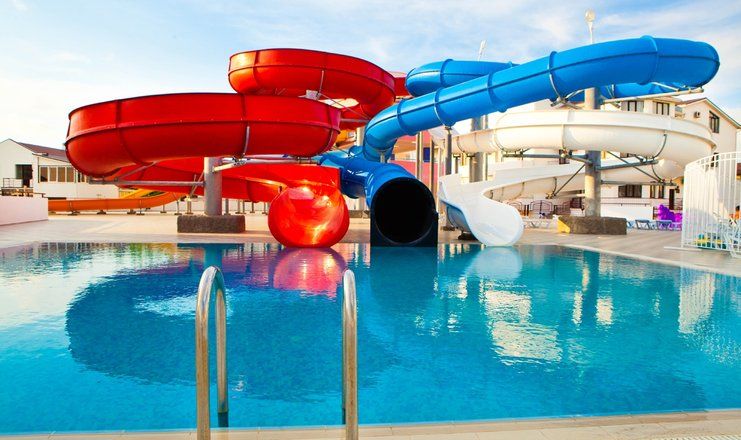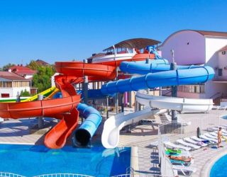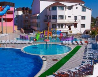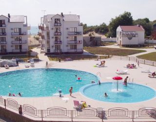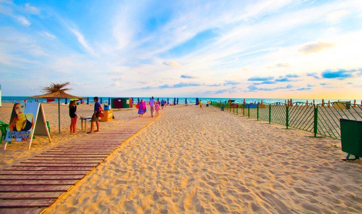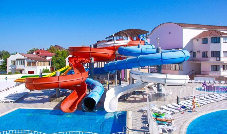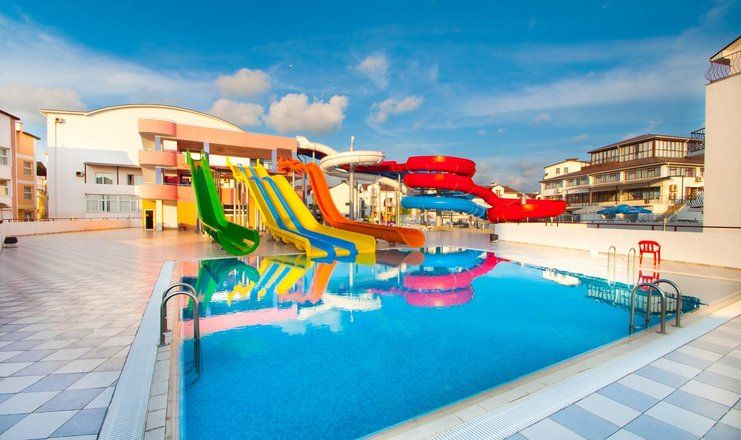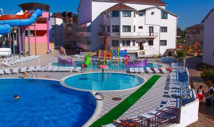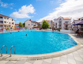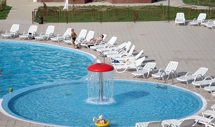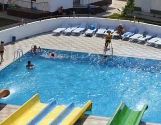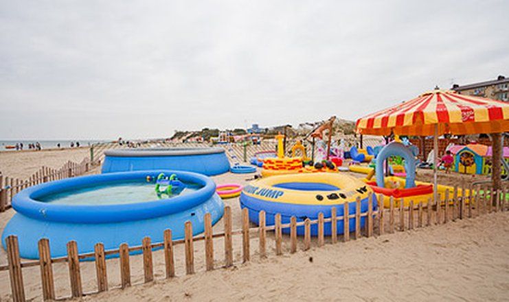 Водные аттракционы на близком песчаном пляже – особое удовольствие. Территория у моря оборудована кабинками для переодевания, туалетом, душевыми и кафе.