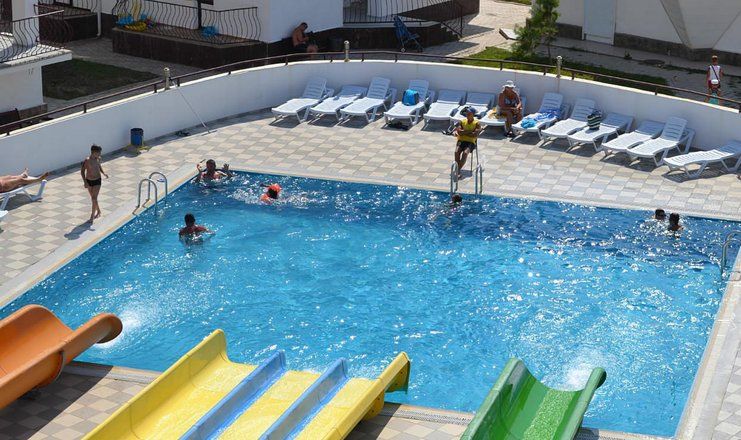 Элегантные современные здания пансионата высотой в 3-5 этажей размещены среди великолепных южных растений, ухоженных клумб. Построены они в 2003 году, реконструированы спустя семь лет. На территории отеля есть несколько бассейнов с лазурной водой прямо под открытым небом – радость для детей и взрослых. Отель открыт для гостей в теплое время года – с мая по октябрь. В эти чудесные месяцы «Фея-2» принимает отдыхающих в комфортабельных номерах с уютной обстановкой, удобной мебелью и комплектом бытовой техники. Из окон и балконов открывается пленительный вид на окрестности.