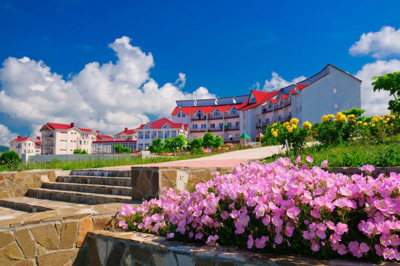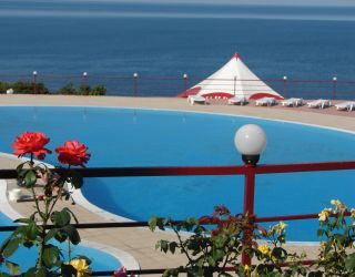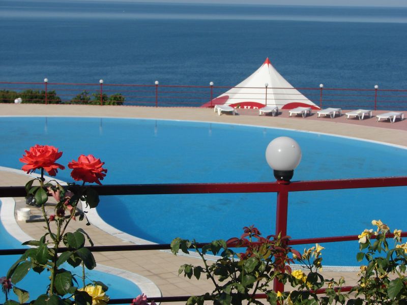 Отдыхали семьей в первых числах июня, в двух разных номерах. Номера большие с балконами. В номерах помимо кроватей была мягкая мебель. К чистоте мягкой мебели и паласам остались вопросы, но в целом номерами остались довольны. Питание - шведский стол - имеет свои особенности, с которыми приходится мириться, но выбор блюд был весьма разнообразен. На территория пансионата обилие и разнообразие роз поражают воображение. Пансионат расположен в тихом месте, далеком от цивилизации, что нам очень понравилось. Погодные условия не позволяли купаться в море, и мы пользовались бассейном. Людей в пансионате было не очень много, поэтому и в бассейне и на лежаках вокруг него места было достаточно для комфортного отдыха.