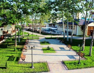 Самолетом до аэропорта г. Анапы, далее на маршрутном такси №113 до остановки «Аквапарк», далее на маршрутном такси №114 до остановки «Паралия», далее 300 м до отеля.
