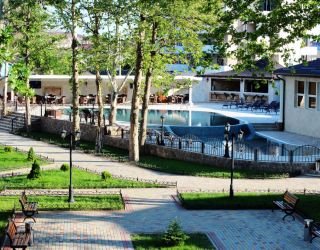 На территории базы отдыха работают столовая и кафе. В распоряжении отдыхающих открытый бассейн, скамейки для отдыха, охраняемая парковка. Гостям доступны услуги прачечной и беспроводной интернет. В пансионате устраиваются кинопоказы, есть конференц-зал для проведения деловых мероприятий и встреч. Для детей организована игровая площадка, детский бассейн, работает видеозал, проводятся анимационные программы. Малышам предоставляются стульчики для кормления, кроватки и прогулочные коляски.