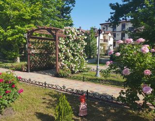 База отдыха занимает территорию площадью 7000 кв.м., расположенную среди зеленой парковой зоны, и включает 7 двухэтажных корпусов. Единовременно пансионат может вместить более 100 отдыхающих. Гостей ожидают двухместные комфортабельные номера Стандарт, Люкс и Стандарт Улучшенный. Во всех номерах классический интерьер, есть санузел
