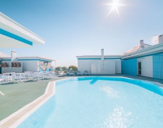 В распоряжении постояльцев отеля – два открытых подогреваемых бассейна на высоте третьего этажа, работающих сезонно, с релакс-зоной и баром.