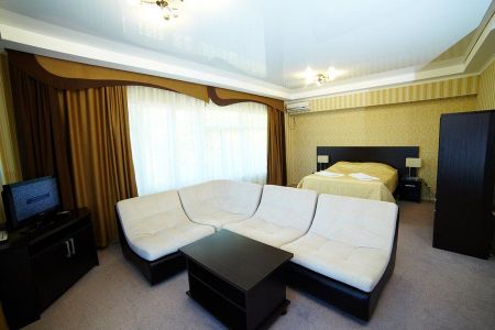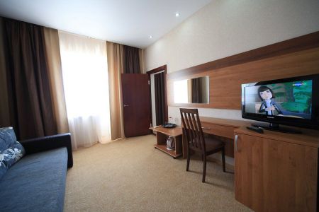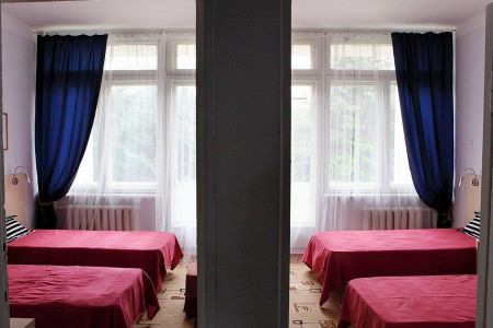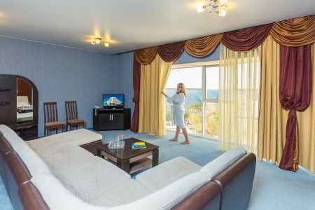 Самолетом до аэропорта г. Анапы, далее на маршрутном такси №113 до остановки «Аквапарк», далее на маршрутном такси №120 до остановки «Санаторий Русь», далее 320 м до санатория.