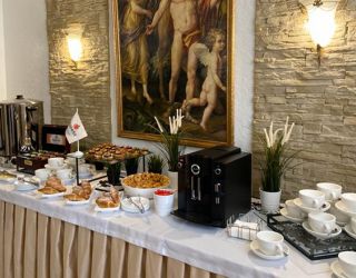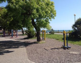 До ближайшего спуска к городскому галечному пляжу – около 400 метров. Он оборудован навесами, солнцезащитными зонтами, лежаками и шезлонгами.