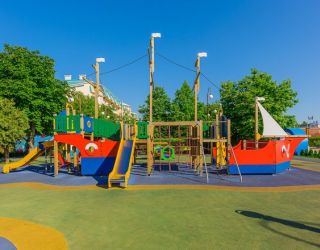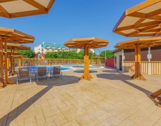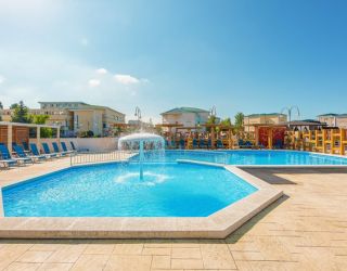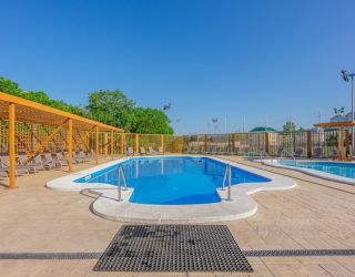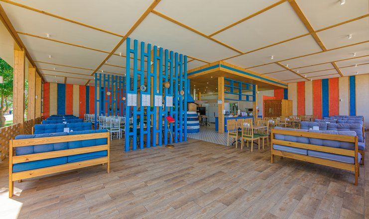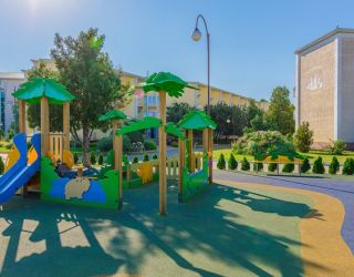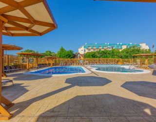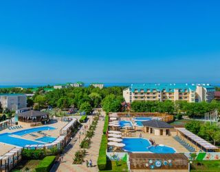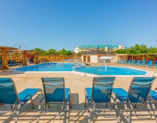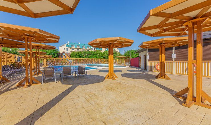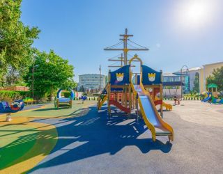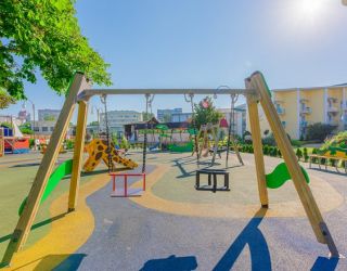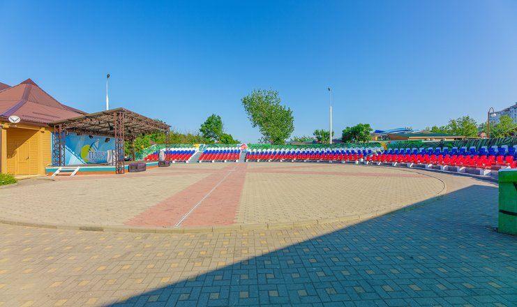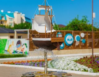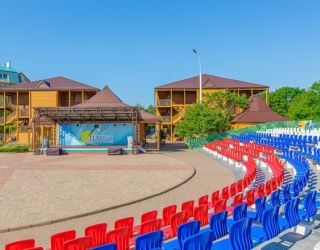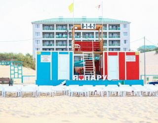- собственный оборудованный пляж (пляжные полотенца, теневые навесы, детская площадка, спортивная площадка)
