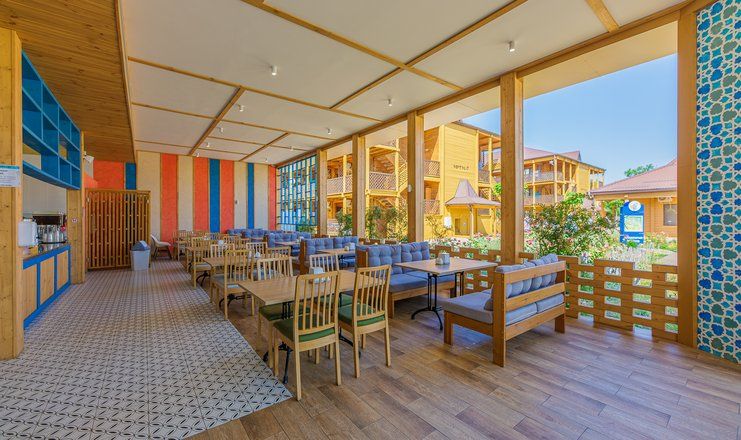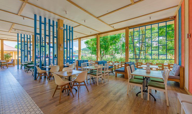 На территории работают Кафе «Buon appetito», кафе узбекской кухни «Чайхана» и несколько баров со вкусными напитками. Для любителей активного отдыха в санатории организован спортивный комплекс. В распоряжении гостей баскетбольная и волейбольная площадки с качественным искусственным покрытием, есть бильярд. Также на территории расположено два открытых бассейных комплекса с 7 чашами, в которых предусмотрен подогрев, для детей в бассейнах оборудованы специальные неглубокие отделения. По вечерам в санатории проводятся досуговые мероприятия, устраиваются тематические вечеринки, красочные файер-шоу. Для автовладельцев на территории комплекса организована охраняемая парковка. Все деловые мероприятия, семинары, тренинги можно провести в современном конференц-зале, рассчитанном на 350 приглашенных. Зал оснащен всей необходимой мебелью и мультимедийной техникой.