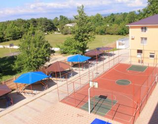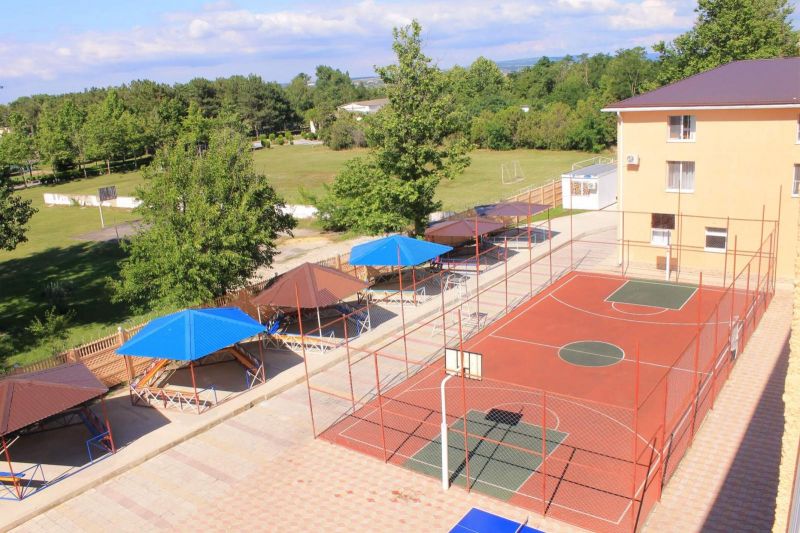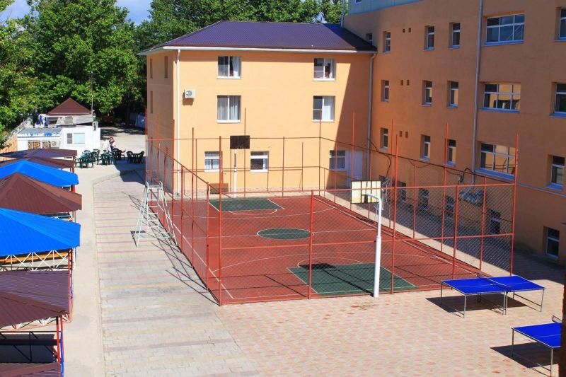 Имеется летняя эстрада с танцплощадкой, многофункциональная площадка со специальным покрытием для мини-футбола, футбола, волейбола, теннисный корт, уличные спортивные тренажёры, волейбольная площадка для игры в пляжный волейбол, пионербол, площадка для игры в бадминтон, спортивный инвентарь по всем видам спортивных игр.