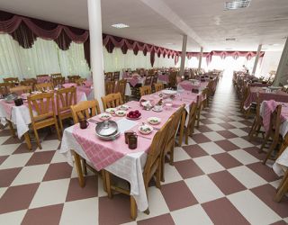 Питание гостей санатория осуществляется три раза в день по системе «меню-заказ» в основной столовой. Есть диетические блюда по рекомендации врача.