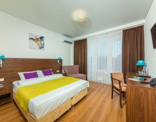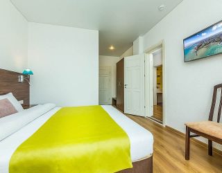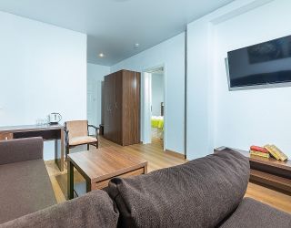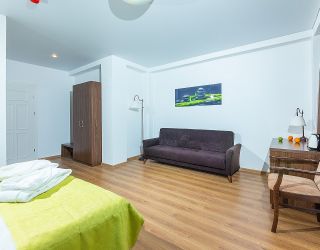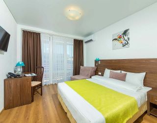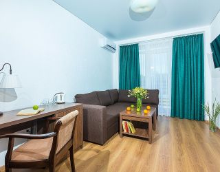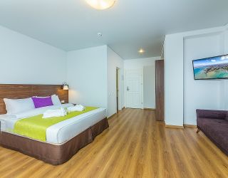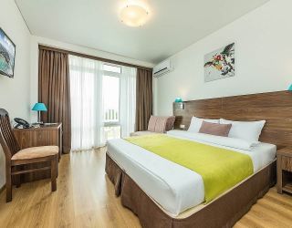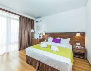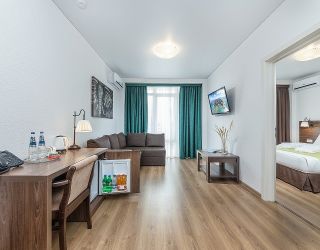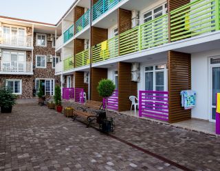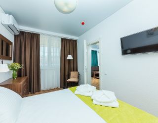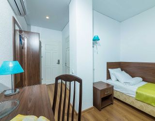 Отель разместился в трехэтажном корпусе с ярким стильным дизайном. Гостей ожидают одноместные и двухместные номера Стандарт, Студио и Люкс. В комнатах лаконичный современный интерьер, есть все необходимое для комфортного размещения: индивидуальный санузел, сплит-система, плазменный телевизор и друга техника.