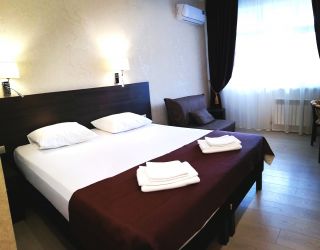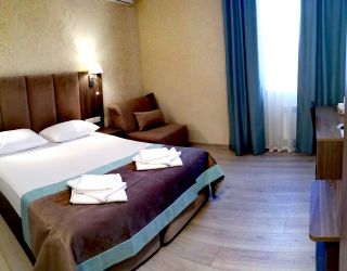 Гостевой дом занимает 4-тажное здание. Заселение предлагается в номера разного уровня комфорта. В них есть все необходимое для проживания: кондиционер, телевизор с широким выбором каналов, а также холодильник, чайник и рабочий стол. В некоторых номерах есть сейф для ценных вещей. Предусмотрена отдельная ванная комната с гигиеническими принадлежностями. Гостям предоставляются полотенца и постельное белье. На 1 этаже функционирует кафе, где можно попробовать разнообразные блюда или насладиться чашкой ароматного кофе.