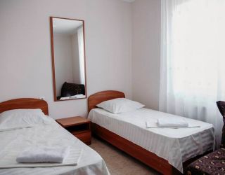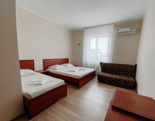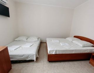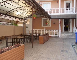 Гостевой дом занимает небольшую закрытую территорию в 900 метра от моря. В распоряжении отдыхающих однокомнатные и двухкомнатные светлые номера с удобствами. В каждом номере предусмотрена индивидуальная ванная комната с душем, есть кондиционер, мини-холодильник и плазменный телевизор.