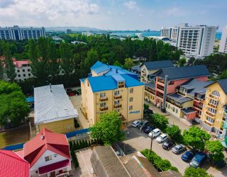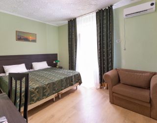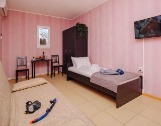 Отель разместился на благоустроенной территории площадью 1300 кв.м. и состоит из двух корпусов - в 2 и 4 этажа. Гостям доступны однокомнатные и двухкомнатные номера Стандарт, оснащенные санузлом, сплит-системой и балконами. В комнатах имеется техника - холодильник, телевизор, фен, электрочайник.