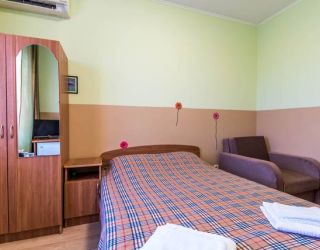 В жилом фонде гостевого дома, находящейся в 4-этажном здании с балконами, есть номера разной категории. Все они обставлены уютной мебелью, имеют ванну или душевую кабину. Набор бытовых приборов варьируется в зависимости от класса номера. В каждом из них есть кондиционер, холодильник, телевизор и электрочайник с набором посуды. «Люксы» и VIP-номера на 4−5 человек имеют дополнительно кухню с газовой плитой и микроволновой печью, душ и биде в ванной, отдельный дворик с мангалом.