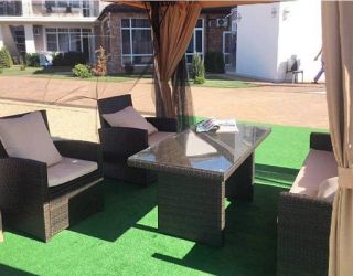 Поездом до ж/д вокзала г. Анапа, далее пройти пешком 1,5 км до остановки «Аквапарк», далее на маршрутном такси №114,128 до остановки до остановки «Рынок Джемете», далее пройти пешком 390 м до отеля.