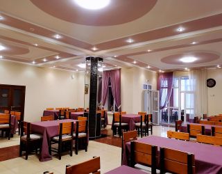 Питание гостей организовано в ресторане. Также на территории находятся бар-кальянная, зона для шашлыка (барбекю) и летнее кафе «Чайхана Тахун». А рядом с отелем различные магазины и рынок.