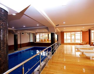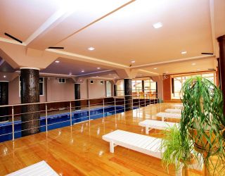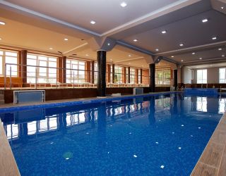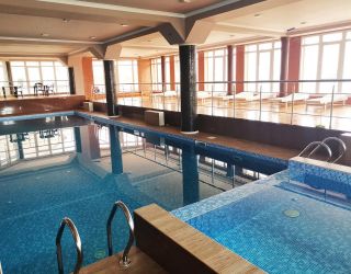 К услугам отдыхающих – бесплатный паркинг, тренажерный зал, настольный теннис, банный комплекс с двумя саунами и русской баней, просторный подогреваемый крытый бассейн, лаунж-зона с гамаками и шезлонгами.