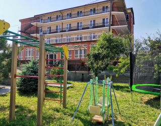 Для детворы есть свое отделение в бассейне, игровая комната и детская площадка.