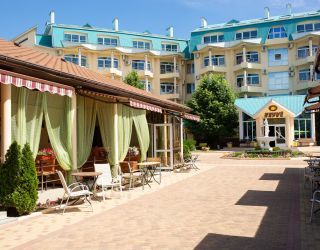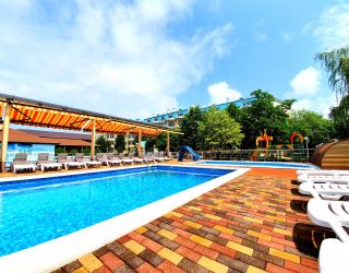 На территории пансионата работают бар с большим выбором напитков и обеденный зал с гриль-меню и блюдами русской и европейской кухонь. В распоряжении гостей три открытых бассейна, в том числе детский с горками, бильярд, настольный теннис. Автовладельцы могут оставить свою машину на охраняемой парковке. Для детей в пансионате регулярно устраиваются развлекательные мероприятия с участием аниматоров, проводятся дискотеки, организована площадка для игр с качелями и горками, а малышам предоставляются кроватки-манежи.