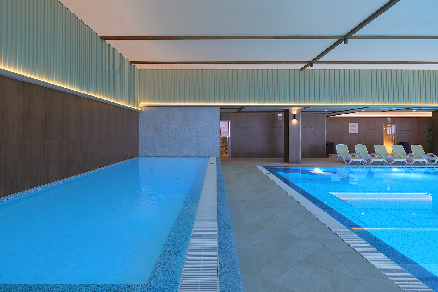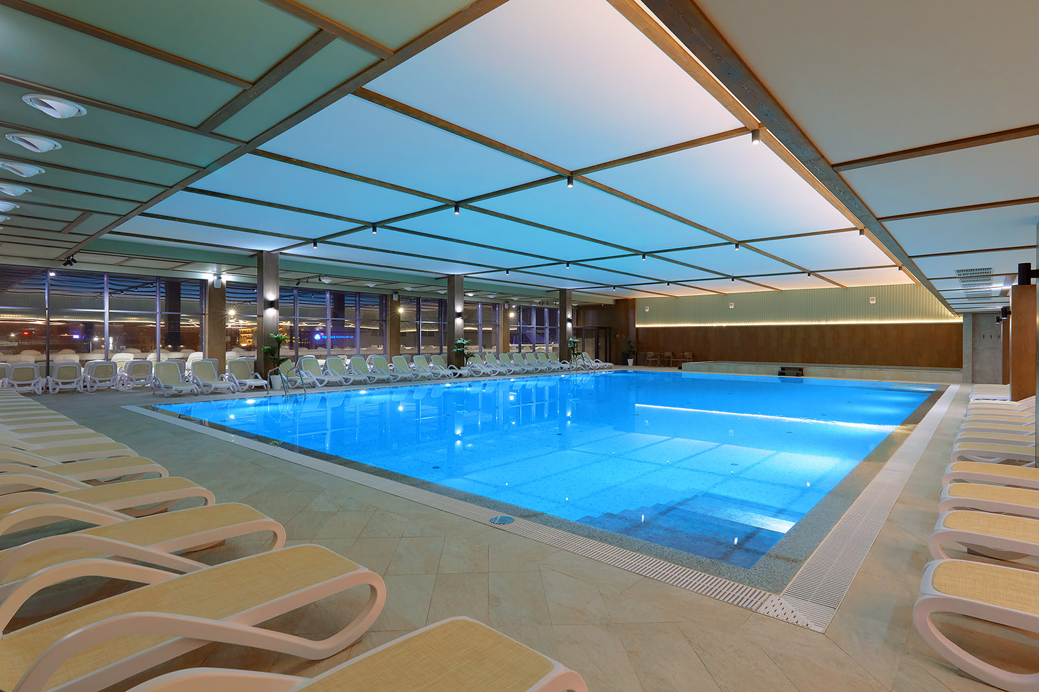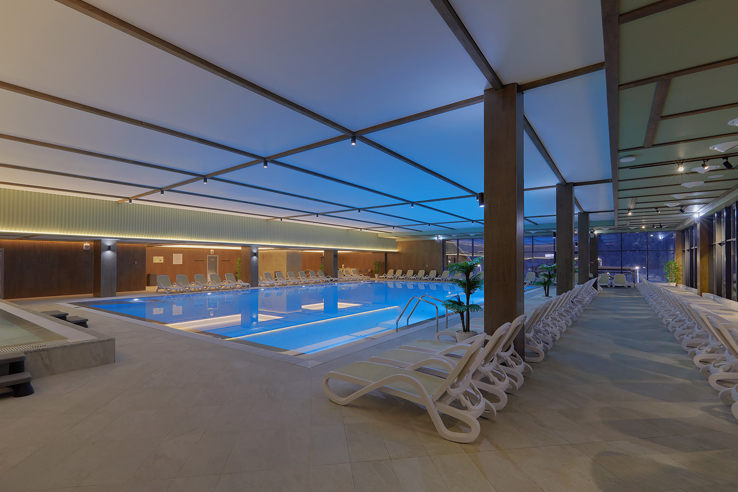 Обрести покой и восстановить внутреннее равновесие гостям поможет посещение акватермального комплекса с хаммамом, финской и арома-сауной. Круглый год на курорте доступны крытые подогреваемые взрослый и детский бассейны, а также открытая чаша джакузи с видом на горы. В фито-баре гостям предлагают травяной витаминный чай и детокс-напиток.