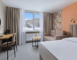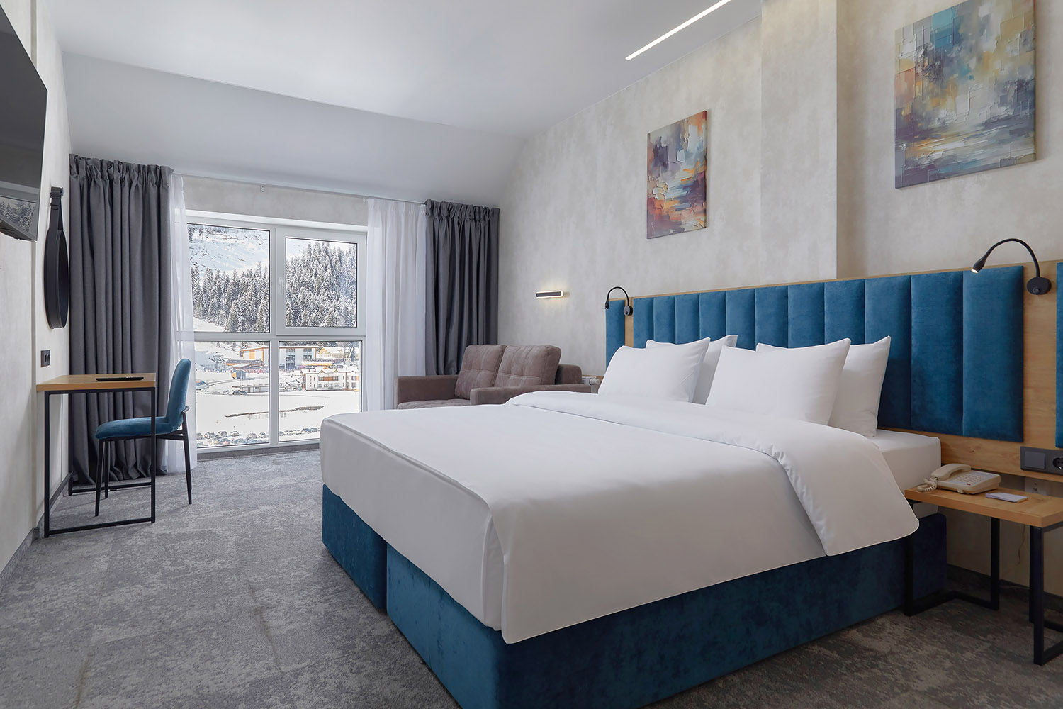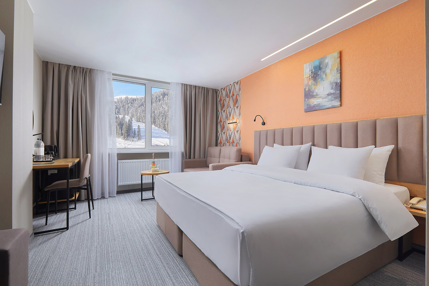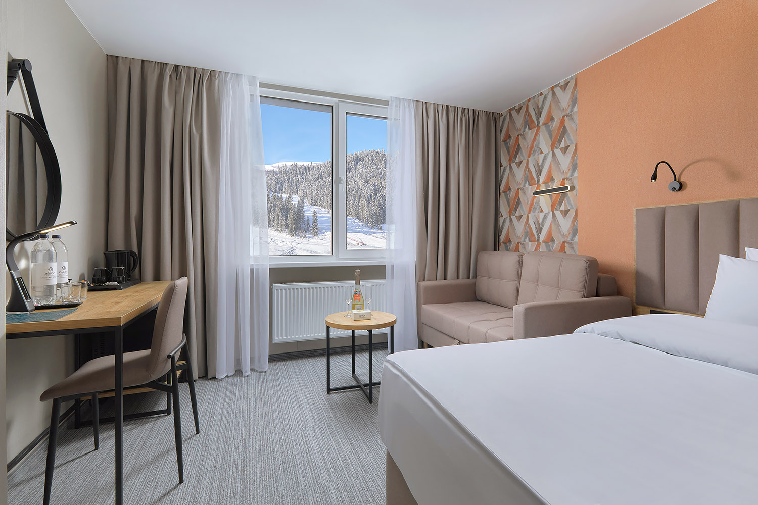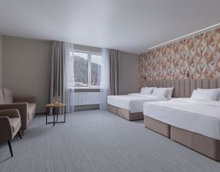 Отель располагает всем необходимым для качественного семейного отдыха: номерным фондом уровня 4*, питанием по системе «шведский стол», акватермальным комплексом, детской и взрослой анимацией, спортивной и развлекательной инфраструктурой, комнатой для хранения спортинвентаря, парковкой, бесплатным Wi-Fi.