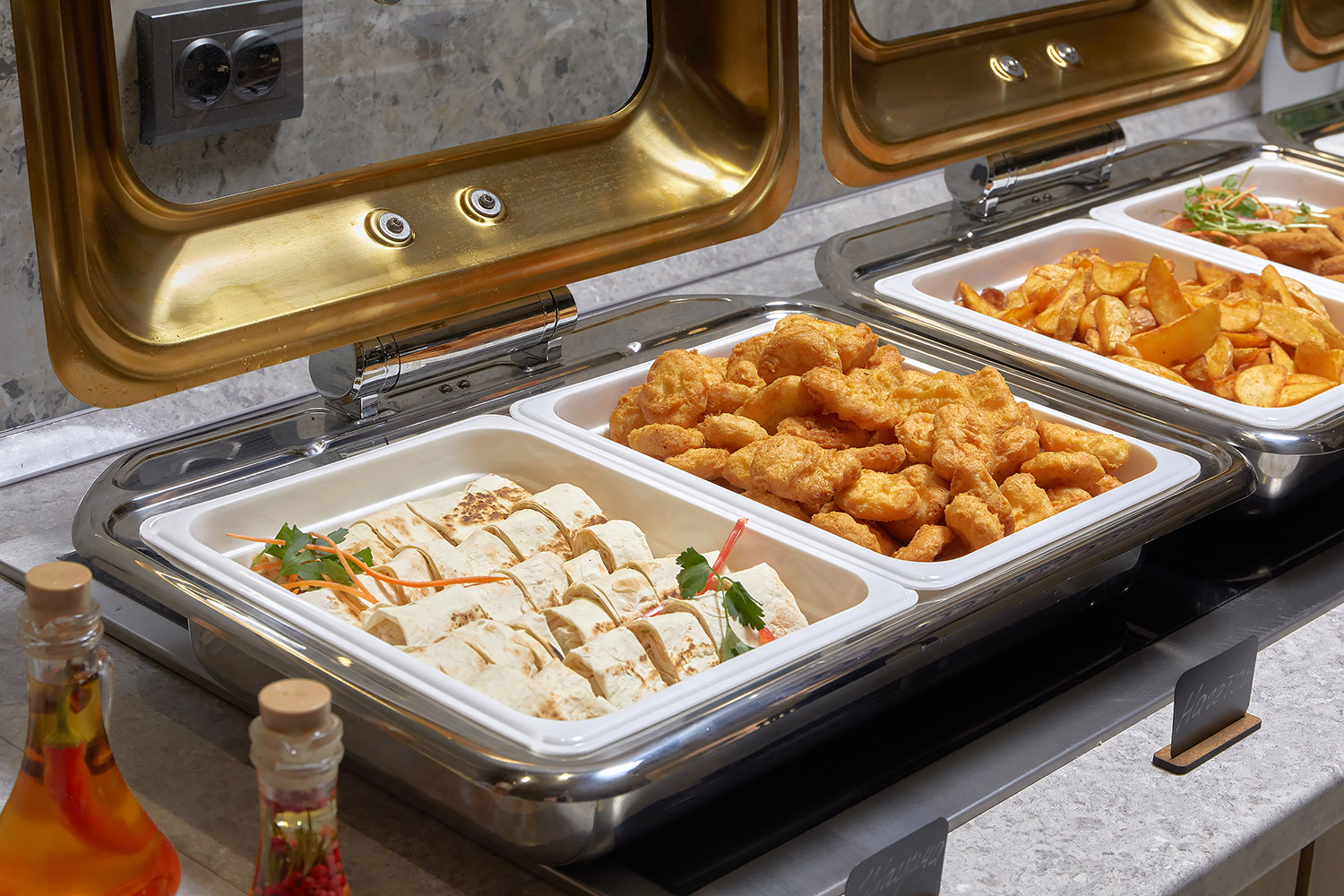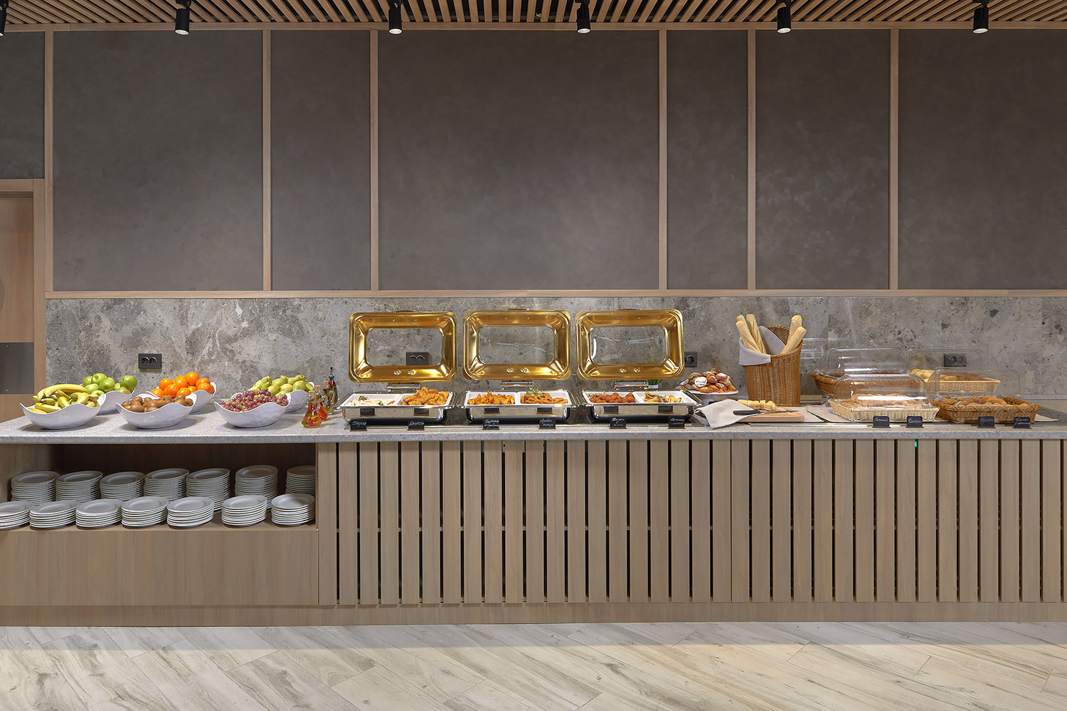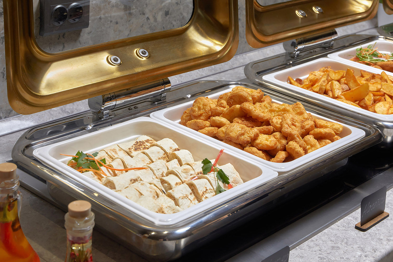 В отеле организовано трехразовое питание по системе «шведский стол». Для меленьких гостей есть детский буфет с баночным питанием и оборудованием для приготовления пюре и смесей. В снек баре курорта доступен разнообразный ассортимент блюд и напитков, а в лаундж-баре алкогольные и безалкогольные напитки.