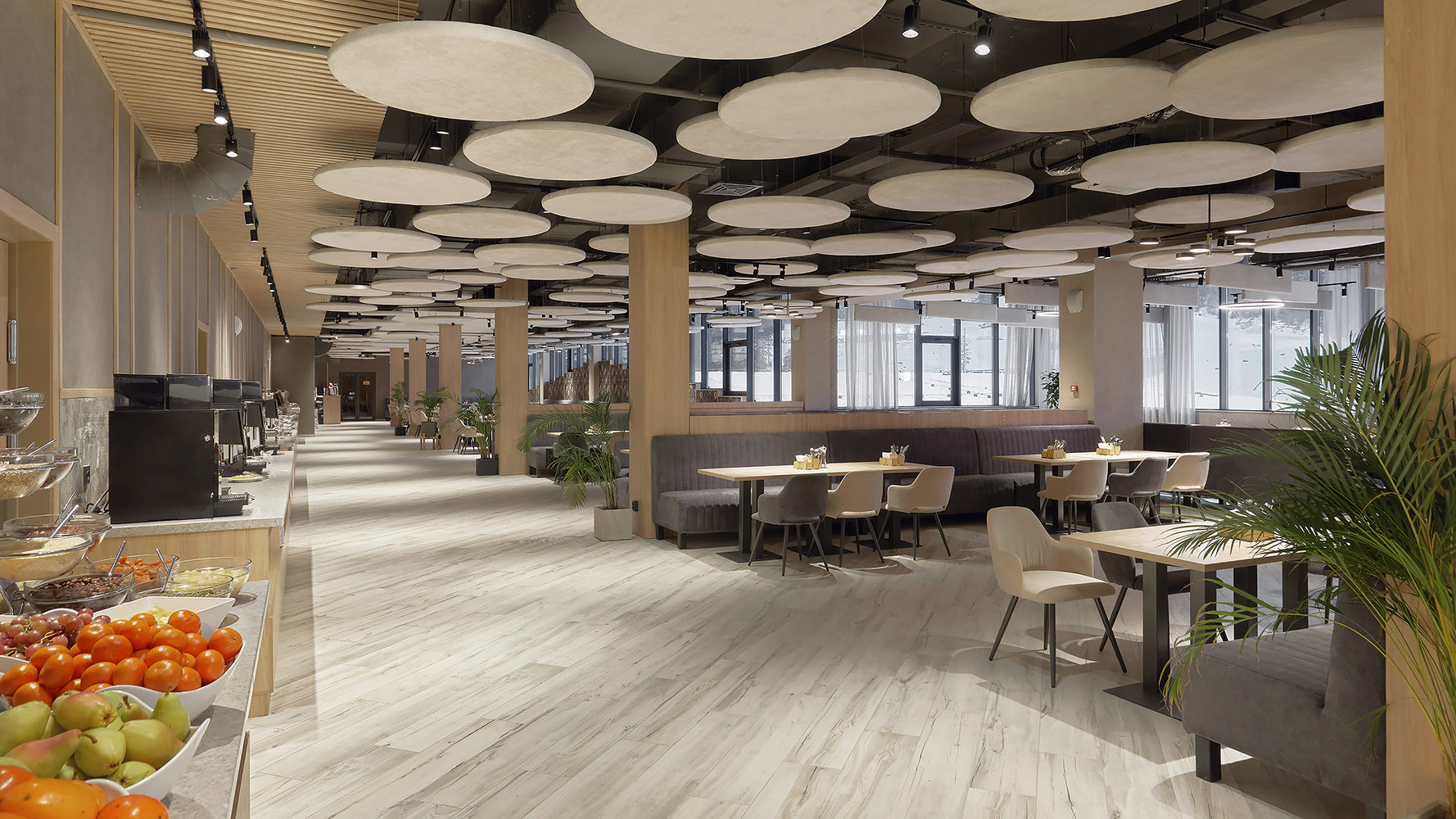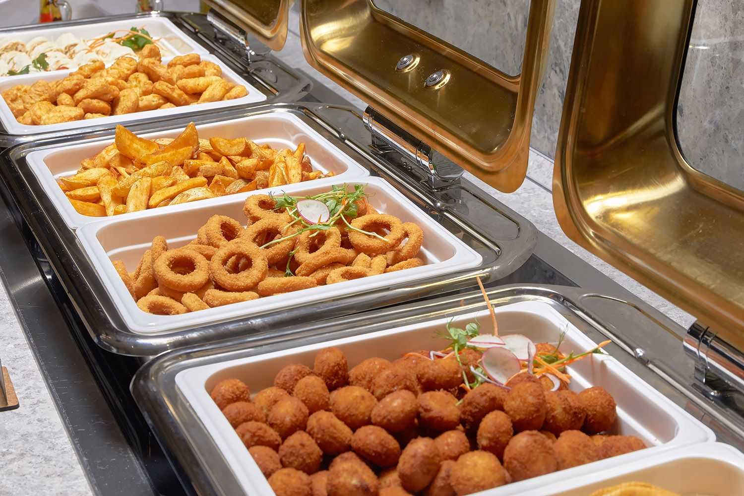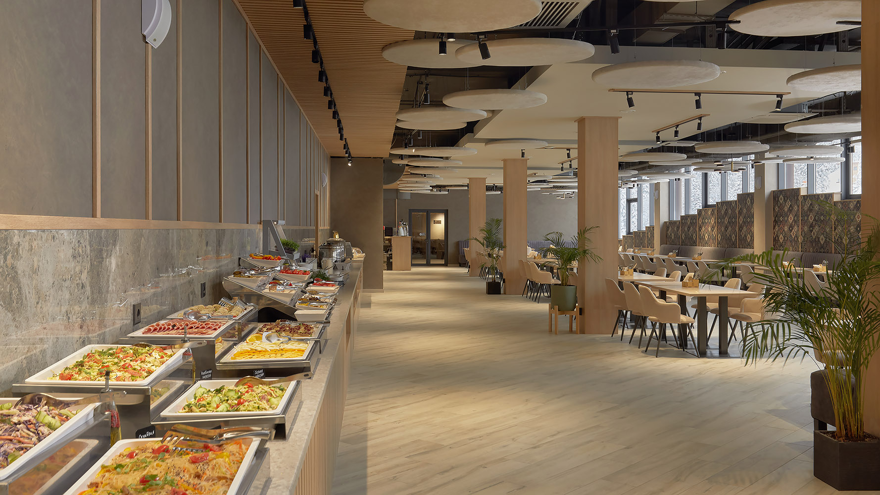 В отеле организовано трехразовое питание по системе «шведский стол». Для меленьких гостей есть детский буфет с баночным питанием и оборудованием для приготовления пюре и смесей. В снек баре курорта доступен разнообразный ассортимент блюд и напитков, а в лаундж-баре алкогольные и безалкогольные напитки.