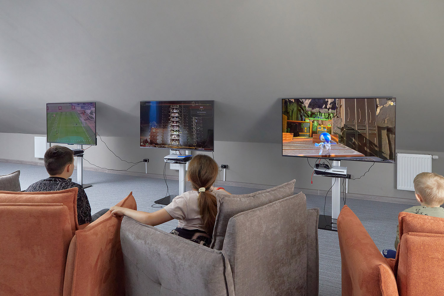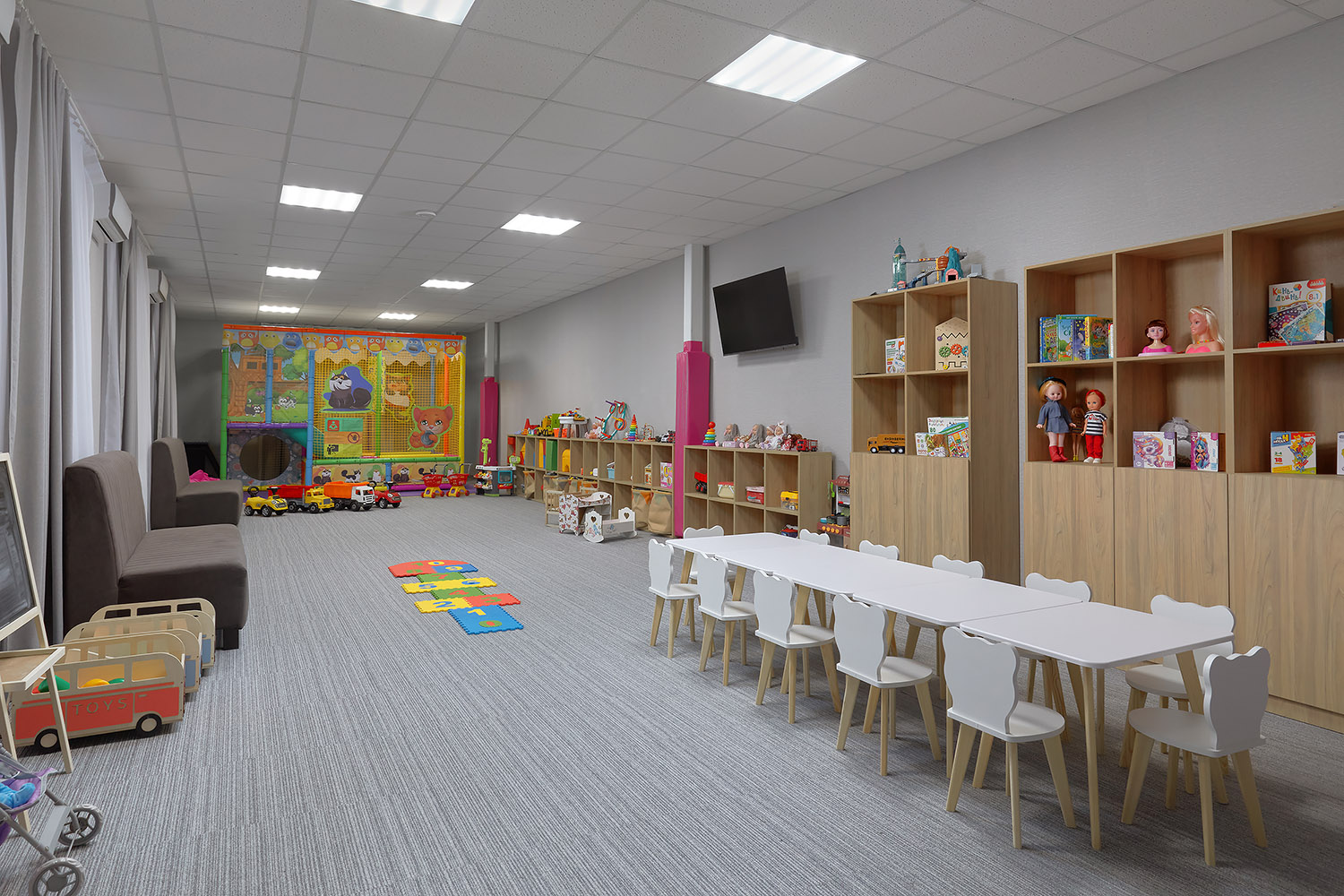 Анимационная команда в течение дня проводит для детей и взрослых разнообразные мастер-классы, конкурсы, спортивные и творческие занятия. Для гостей работают игровая мансарда, комната интеллектуальных игр, детский клуб «ВикиЧики», а также есть детская комната.