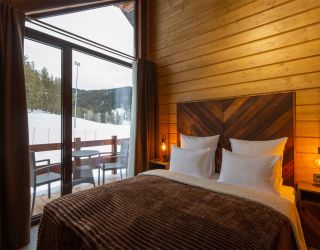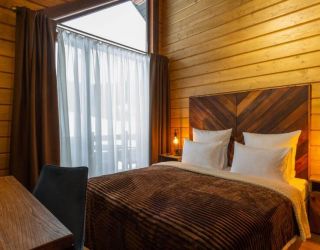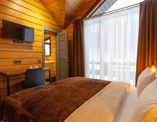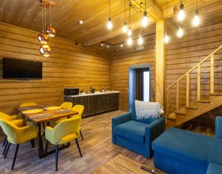 Гостиничный комплекс включает в себя одиннадцать просторных двухэтажных коттеджей. Внутри – стильный современный интерьер, везде есть кухонный уголок, ванная комната с набором туалетных принадлежностей для гостей.
