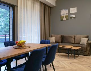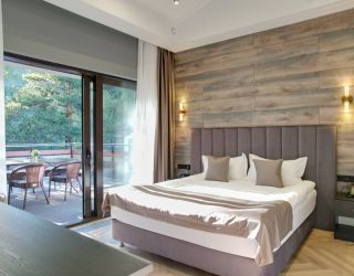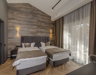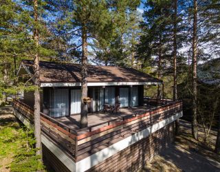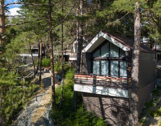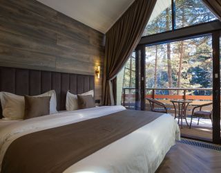 Комплекс занимает территорию площадью 1,3 гектара и включает в себя современные коттеджи с панорамными окнами. В коттеджах стильный интересный интерьер, предусмотрены собственная мини-кухня, ванная комната, терраса. Номера укомплектованы всей необходимой техникой – везде есть телевизор с плоским краном, электрочайник, кофемашина, фен, микроволновая печь, холодильник.