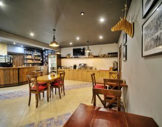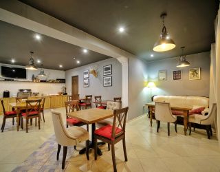 При отеле работает кафе с домашней кухней, есть зона барбекю, где гости могут пожарить мясо. Возле корпуса для автовладельцев организована небольшая парковка, на территории хорошо ловит сеть wi-fi.