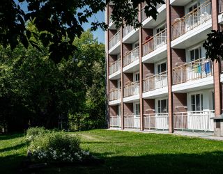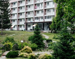 На просторной территории в 14 гектаров располагаются 7 благоустроенных домиков для летнего проживания и жилые корпуса разной этажности, в том числе пятиэтажный корпус, оснащенный лифтом и связанный переходом со столовой и лечебным корпусом. Обширный жилой фонд, способный единовременно принять почти 300 отдыхающих, предлагает гостям номера разных категорий комфорта. В санатории есть как небольшие бюджетные номера, так и просторные апартаменты, оснащенные мини-кухней. В каждой комнате есть индивидуальный санузел, телевизор-ЖК, небольшой холодильник.