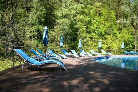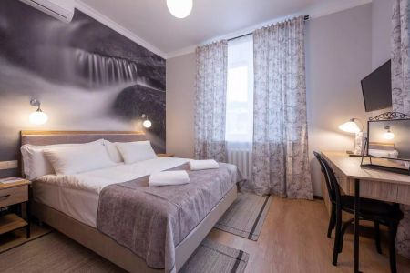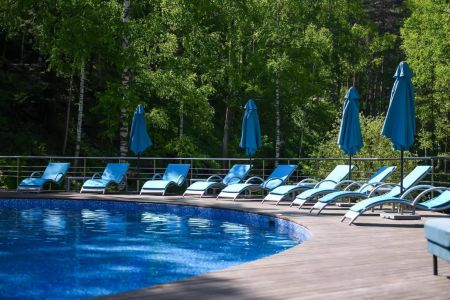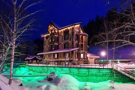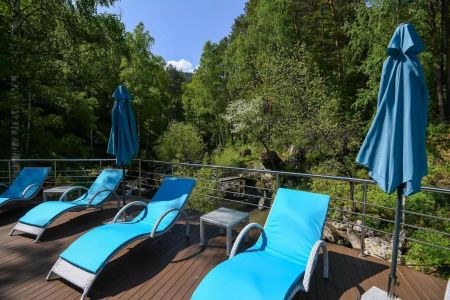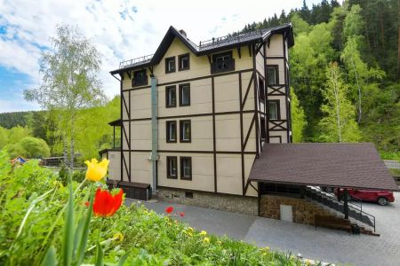 Поездом до ж/д вокзала г. Барнаула, г. Бийска, далее с автовокзала автобусом до автовокзала г. Белокурихи, далее на маршрутке №1, 2, 5, 6 до остановки «Канатно-кресельная дорога», далее пройти 230 м до отеля.