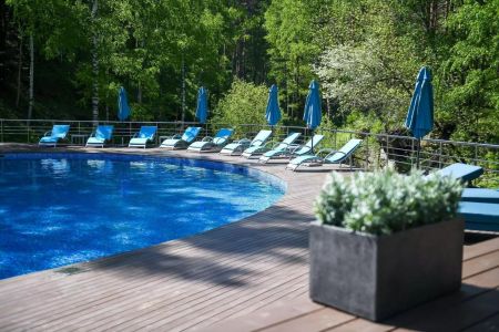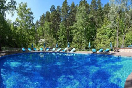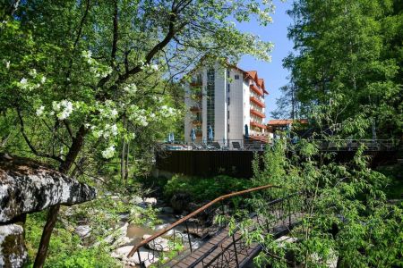 Поездом до ж/д вокзала г. Барнаула, г. Бийска, далее с автовокзала автобусом до автовокзала г. Белокурихи, далее на маршрутке №1, 2, 5, 6 до остановки «Канатно-кресельная дорога», далее пройти 250 м до отеля.