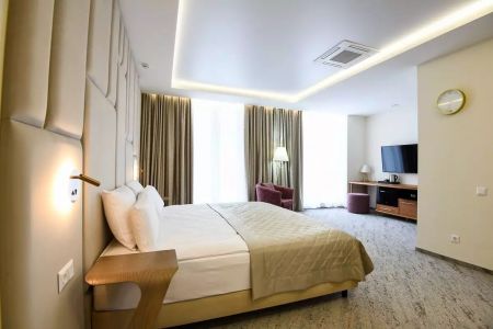 Самолетом до аэропорта г. Барнаула, г. Горно-Алтайска, далее с автовокзала автобусом до автовокзала г. Белокурихи, далее на маршрутке №1, 2, 5, 6 до остановки «Канатно-кресельная дорога», далее пройти 250 м до отеля.