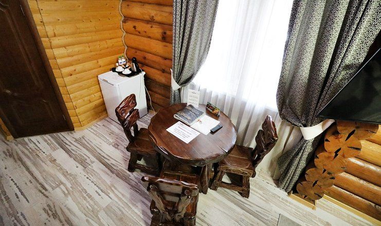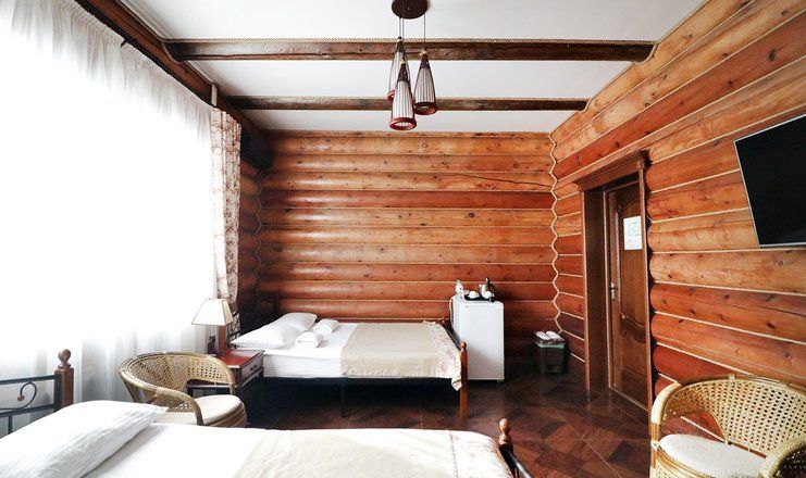 Отель занимает ухоженную благоустроенную территорию, украшенную цветниками и зелеными насаждениями. Трехэтажный деревянный корпус отеля отличается экологичностью: помимо того, что здание полностью выстроено из векового кедра, его внутренняя отделка также выполнена из натуральных материалов. Гостей ожидают двух- и трехместные номера разного уровня комфорта. Независимо от категории везде имеется собственный санузел с душевой кабиной, кондиционер, телевизор, электрочайник и холодильник, а в Апартаментах предусмотрена небольшая мини-кухня с микроволновой печью.