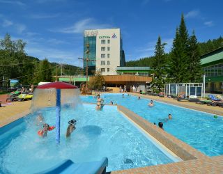 Санаторий «Катунь», входящий в тройку сети санаториев «Курорт Белокуриха», расположен в конце курортной зоны, в окружении лесного массива. Рядом с санаторием начинаются терренкуры, как на ладони раскинут горнолыжный склон, а в паре минут ходьбы находится канатно-кресельная дорога на гору Церковка.
