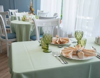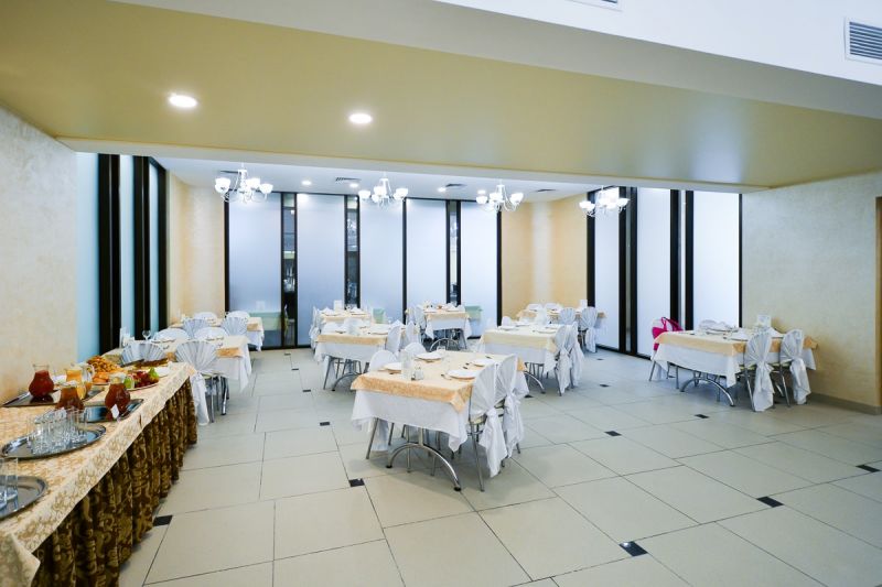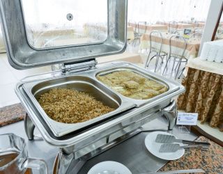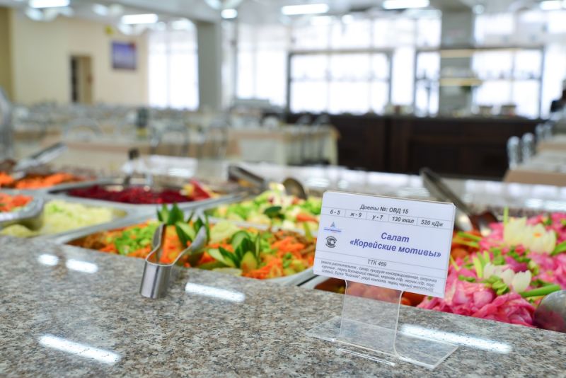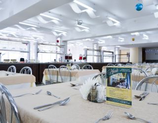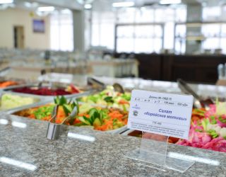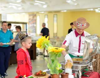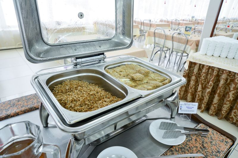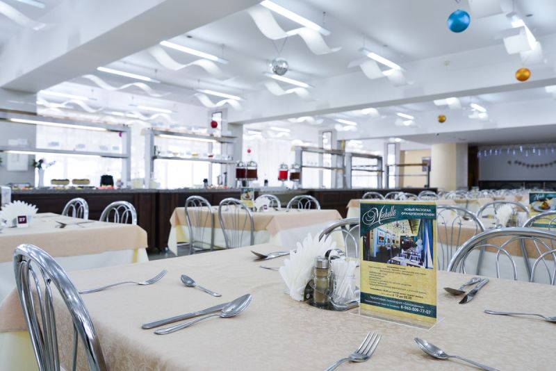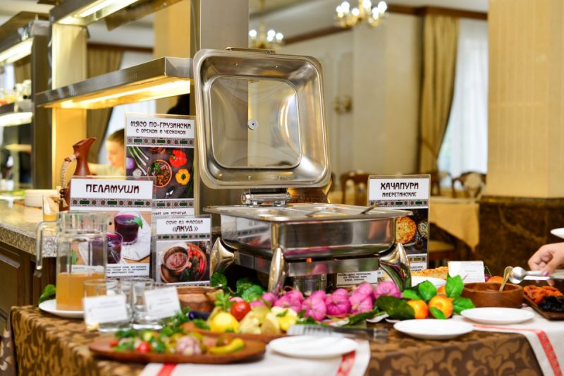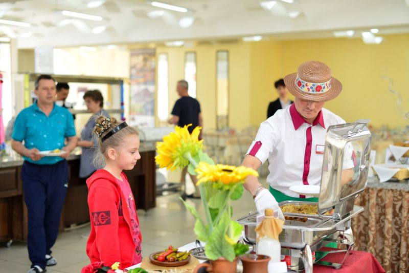 Питание предусмотрено 3-разовое по системе «шведский стол» в ресторане I категории, расположенном на 2 этаже корпуса. Также отдыхающие могут выбрать питание «шведский стол «Люкс» с расширенным выбором блюд и обслуживанием в отдельном зале. Для детей организовано специальное 5-разовое питание.