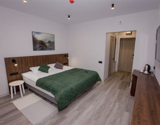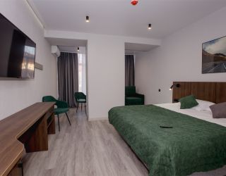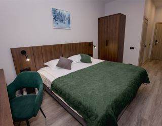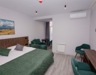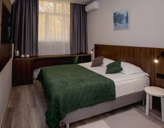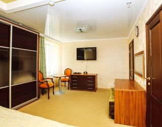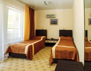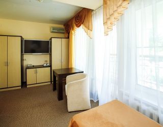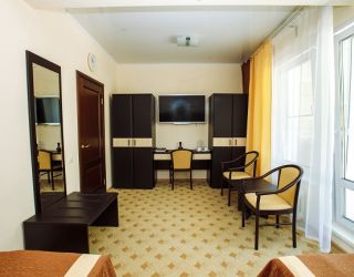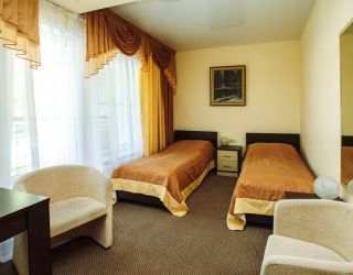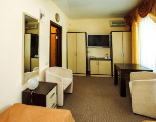 Номерной фонд небольшой, рассчитан на 20 номеров, поэтому в санатории не бывает очередей, а отдых протекает в тихой и размеренной обстановке. В номерах стандартный набор оснащения: санузел с душем, телевизор, холодильник, телефон, кондиционер, фен. В люксах - дополнительно биде, халат и тапочки.