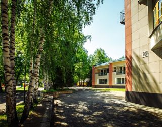 Площадь территории санатория занимает почти 2,5 га, озелененная и ухоженная. Корпус представляет собой одно 3-этажное здание, не оснащенное лифтом, с приметной радиальной входной группой и расположенной выше зоной отдыха с зимним садом.