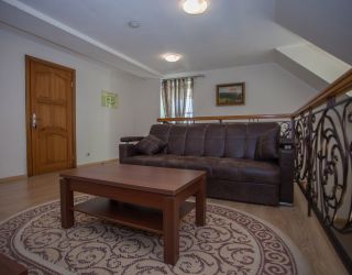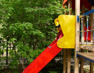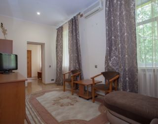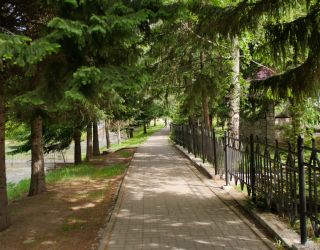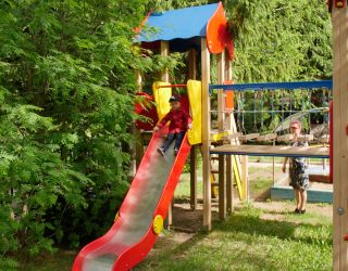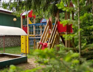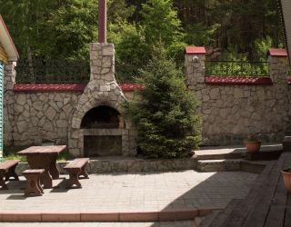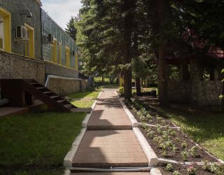Территория пансионата небольшая, огороженная, обустроена площадкой для барбекю, крытым чайным двориком и беседкой. Для детей оборудована игровая площадка и песочница. Рядом с пансионатом раскинулся небольшой пешеходный мостик с удобным выходом к знаменитой Ореховой аллее, курортной поликлинике и водолечебнице.