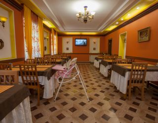 Питание организовано по заказному меню в ресторане, расположенном на 1 этаже. Завтрак включен в стоимость. Для проведения фуршетов предусмотрен отдельный VIP-зал.
