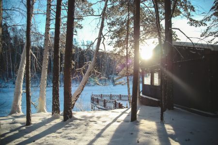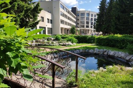 Или на автобусе №12 до остановки «Метро Площадь Маркса», далее на метро от «Площади Маркса» до «Речного вокзала», далее на маршрутке №332 до остановки «ДК Родина», далее на маршрутке №18 до остановки «Пионерский лагерь Юбилейный», далее пройти 130 м до санатория.