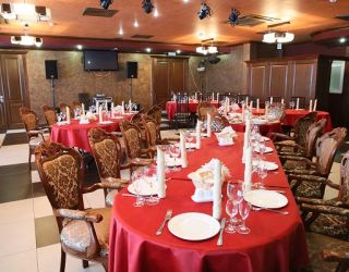 Здесь можно организовать мероприятие или праздник самого высокого уровня - корпоративный банкет, деловую встречу партнеров или отметить подписание важного контракта. Индивидуальное оформление зала, авторский дизайн и элитные материалы, использованные в оформлении, создают впечатление яркой индивидуальности интерьера и роскоши.