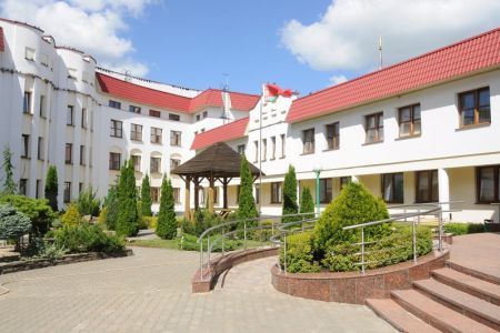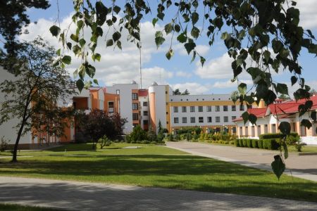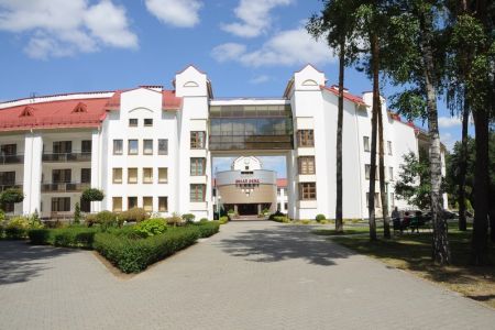 Самолетом до аэропорта г. Брест, далее пешком или на такси 2 км до остановки «Хабы», далее на маршрутном такси до остановки «Автовокзал Брест», далее пешком 100 м до автовокзала, далее на рейсовом маршрутном такси в направлении: «Автостанция Каменец» до остановки «Санаторий Белая Вежа», далее пешком 1 км до санатория.