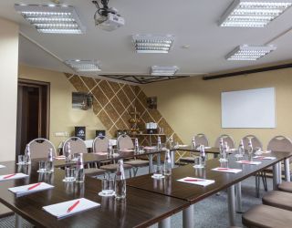 Конгресс-отель «Россия» предлагает небольшой удобный конференц-зал для проведения семинаров, переговоров и деловых встреч. Зал расположен на 8 этаже отеля и оборудован маркерной доской, кондиционером и Wi-fi (по запросу).
