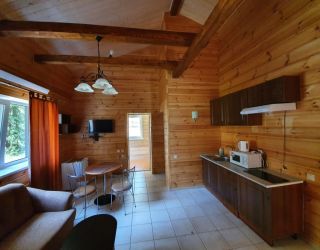 Гости имеют возможность подобрать для себя удобный вариант размещения: проживание в комфортных номерах в корпусе, тематических коттеджах, уютных шале. В коттеджах и шале оборудованная кухня. В общественных зонах есть Wi-Fi.